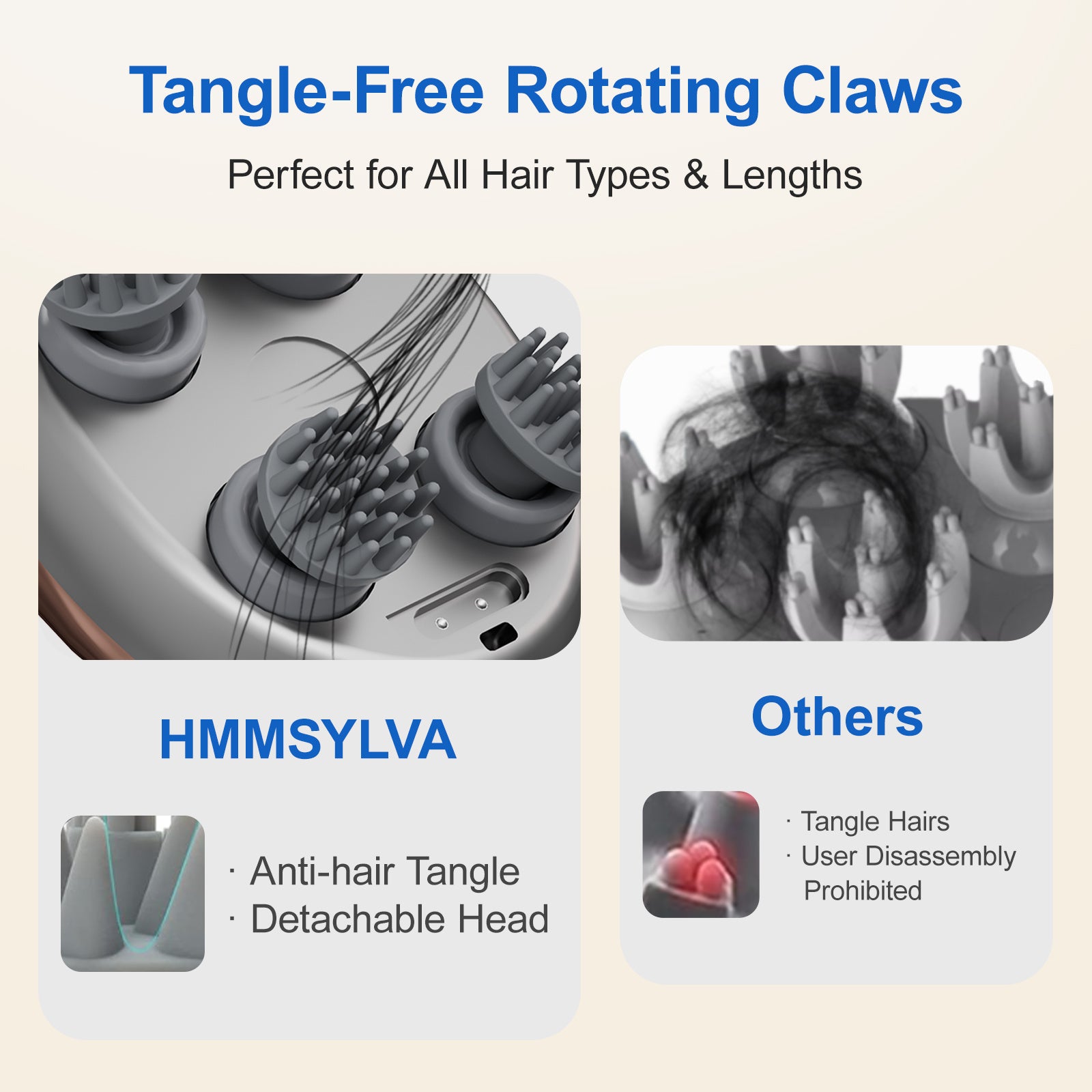 1. 3D rotational massage technology: 6 silicone contacts precisely fit the curve of the head, simulating hand kneading, deeply relaxing the scalp.